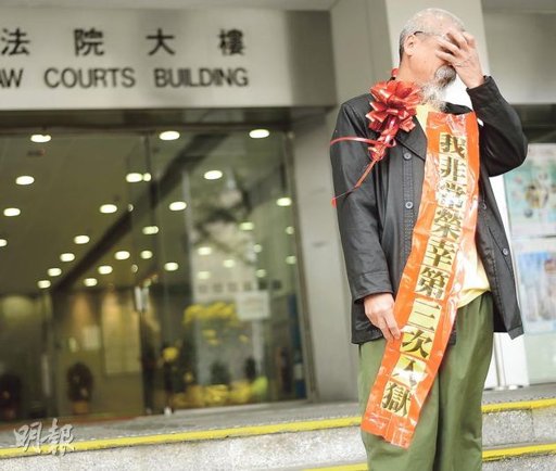 被告古思堯(66歲)去年6月10日為抗議李旺陽「被自殺」,攜同塗污的中共政權國旗跟隨遊行隊伍到中聯辦示威並當場焚燒中共政權國旗。今年元旦,他手持塗污的中共政權國旗及香港特區傀儡政權區旗參與遊行,因而被控3項侮辱國旗罪及1項侮辱區旗罪。